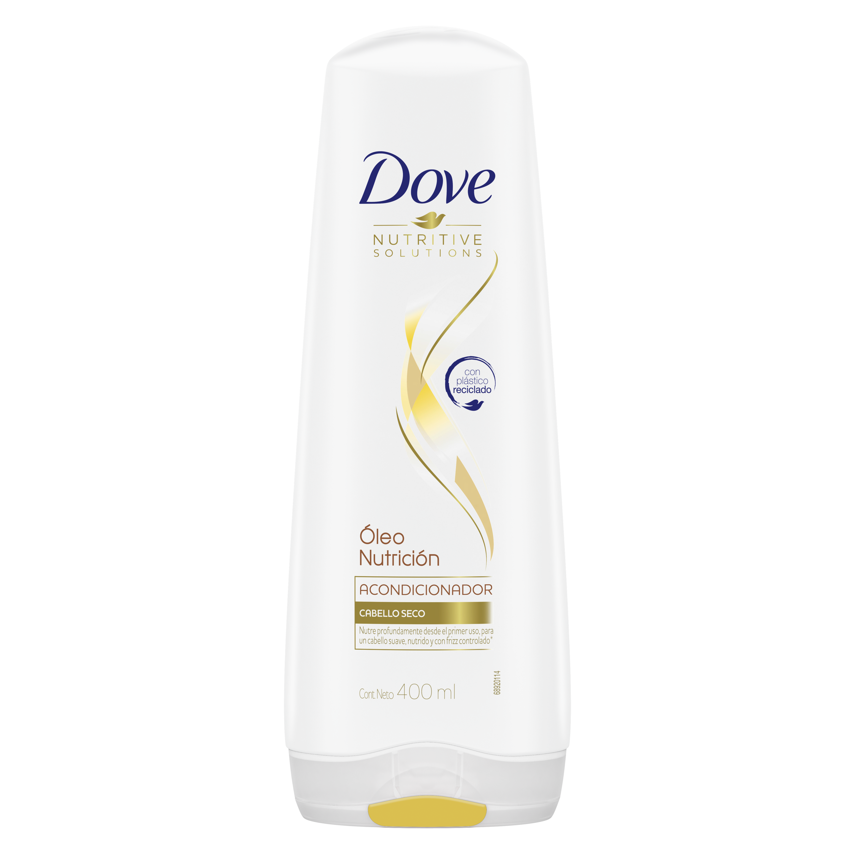 Acondicionador Dove Óleo Nutrición Superior nutre profundamente, devuelve hasta 100% suavidad. La crema de enjuague que ayuda a suavizar el pelo áspero y controla el frizz. Acondicionador formulado con Nutri-Óleos livianos; trata el pelo seco y con frizz. Nutrición para el cabello hasta lo más profundo mejorándolo de los daños. Los acondicionadores Dove Óleo Nutrición dejan tu cabello sin grasitud y lo protegen del desgaste. Las botellas de los acondicionadores están hechas con plástico reciclado.