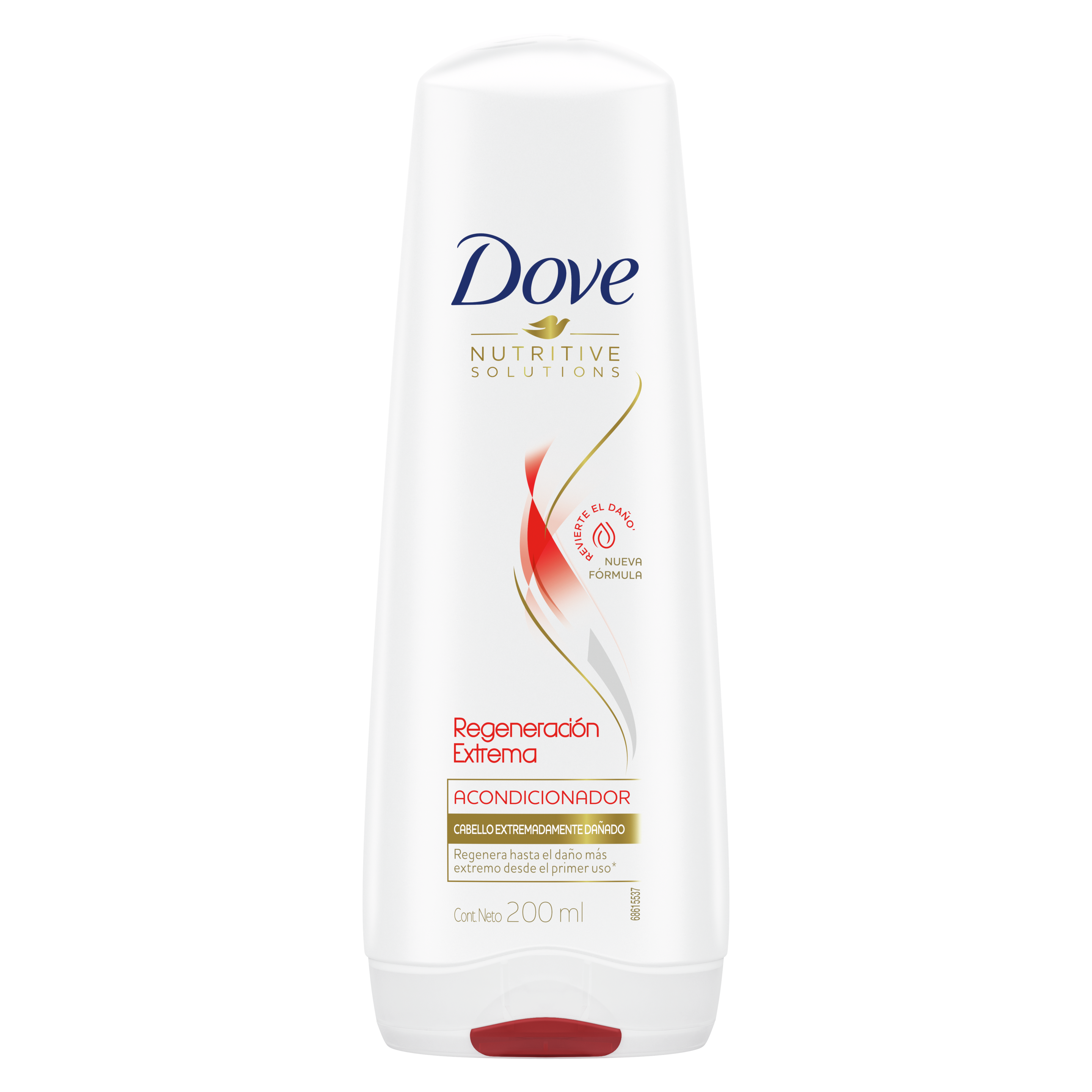 Acondicionador Dove Regeneración Extrema regenera hasta el daño más extremo* *Daños causados por decoloraciones. Acondicionador para pelo extremadamente dañado, fue pensado para mujeres que han experimentado el corte químico y están en búsqueda de un producto que le devuelva la vida a su pelo. Tratamiento capilar Dove Regeneración Extrema para cabellos extremadamente dañados. Los acondicionadores Dove contienen ingredientes de reparación interna. El efecto de este acondicionador es progresivo, es decir, el cabello se vuelve más resistente al daño. Acondicionador reparador con poderosos ingredientes activos regeneradores que nutren profundamente la fibra capilar activando el proceso de regeneración interna del cabello.