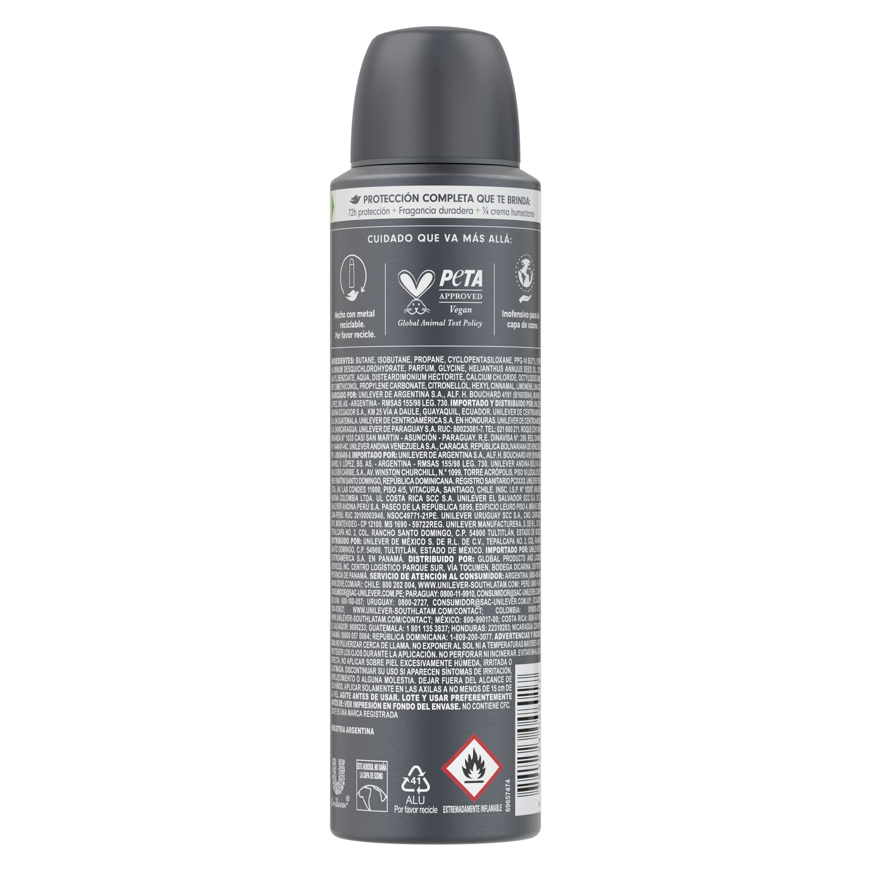 Nuevo Antitranspirante en aerosol Dove Men Extra Fresh. Este antitranspirante posee una fórmula enriquecida con nuestro exclusivo ¼ de crema humectante para un mejor cuidado de la piel. Obtené protección por 72 horas contra la transpiración y el mal olor en las axilas con este antitranspirante para hombres. El antitranspirante Dove está diseñado para brindarte la protección y frescura que necesitas a diario. Los antitranspirantes Dove Men cuentan con Certificación Vegana por PETA. ¡Disfrutá de la fragancia cítrica por más tiempo con el antitranspirante Dove Men Extra Fresh y sentite seguro todos los días!.