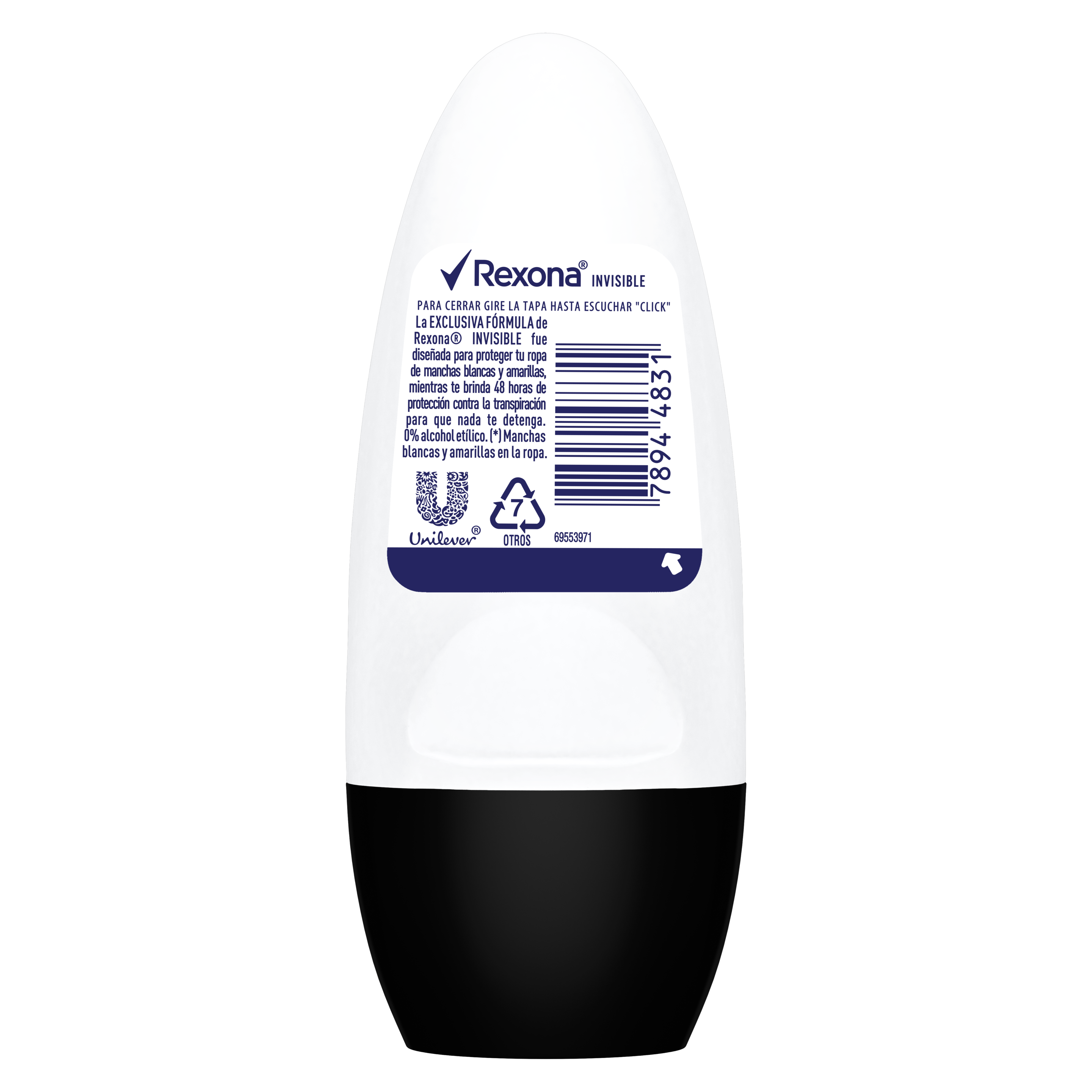 Desodorante Antitranspirante REXONA Invisible fórmula antimanchas. Antitranspirante femenino con 48 horas de protección contra la transpiración y mal olor. Desodorante formulado con una exclusiva tecnología activada por el movimiento; liberando protección inmediata contra el mal olor y frescura. Este antitranspirante Rexona contiene su mejor fórmula anti manchas, que te protege de las manchas blancas, amarillas y de la transpiración. Rexona, cuanto más te movés, más te protege. Probá los desodorantes Rexona y movete. El formato Roll-On es fácil de usar y aplica la cantidad precisa.