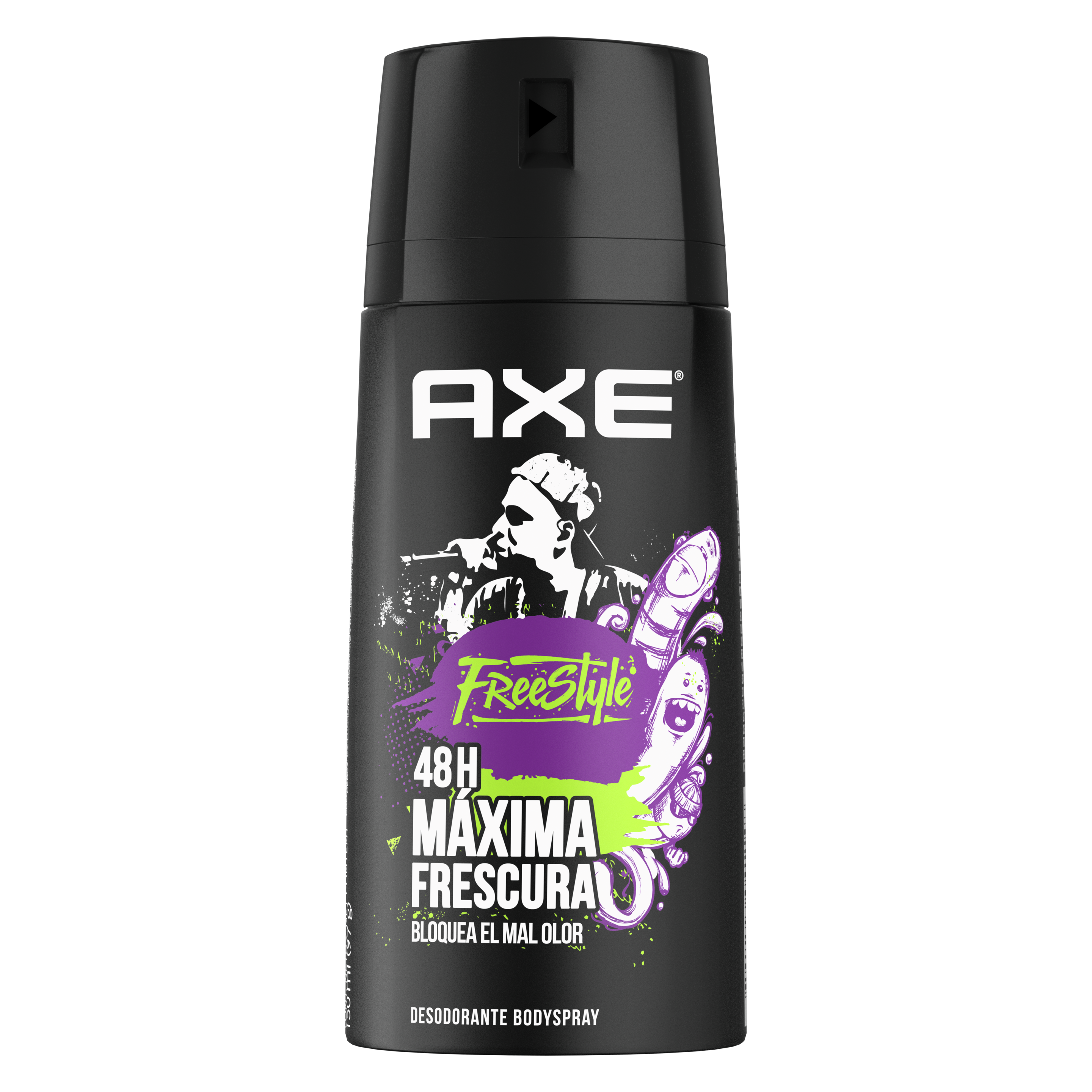 Luego de 5 años de innovación, Axe trae una tecnología totalmente disruptiva para combatir el mal olor: Desodorante AXE Freestyle en aerosol. Desodorante con tecnología exclusiva, actúa sobre el mal olor eliminando las bacterias que lo provocan y bloqueando las moléculas de mal olor, potenciando la frescura. SPOILER ALERT: vas a oler increíble con el desodorante Axe. Los desodorantes AXE regulan el sudor de las axilas, ya que contienen destructores de mal olor. Los desodorantes en aerosol AXE son 0% Sales de aluminio. Desodorante Bodyspray: se aplica en las axilas y en el torso del cuerpo.