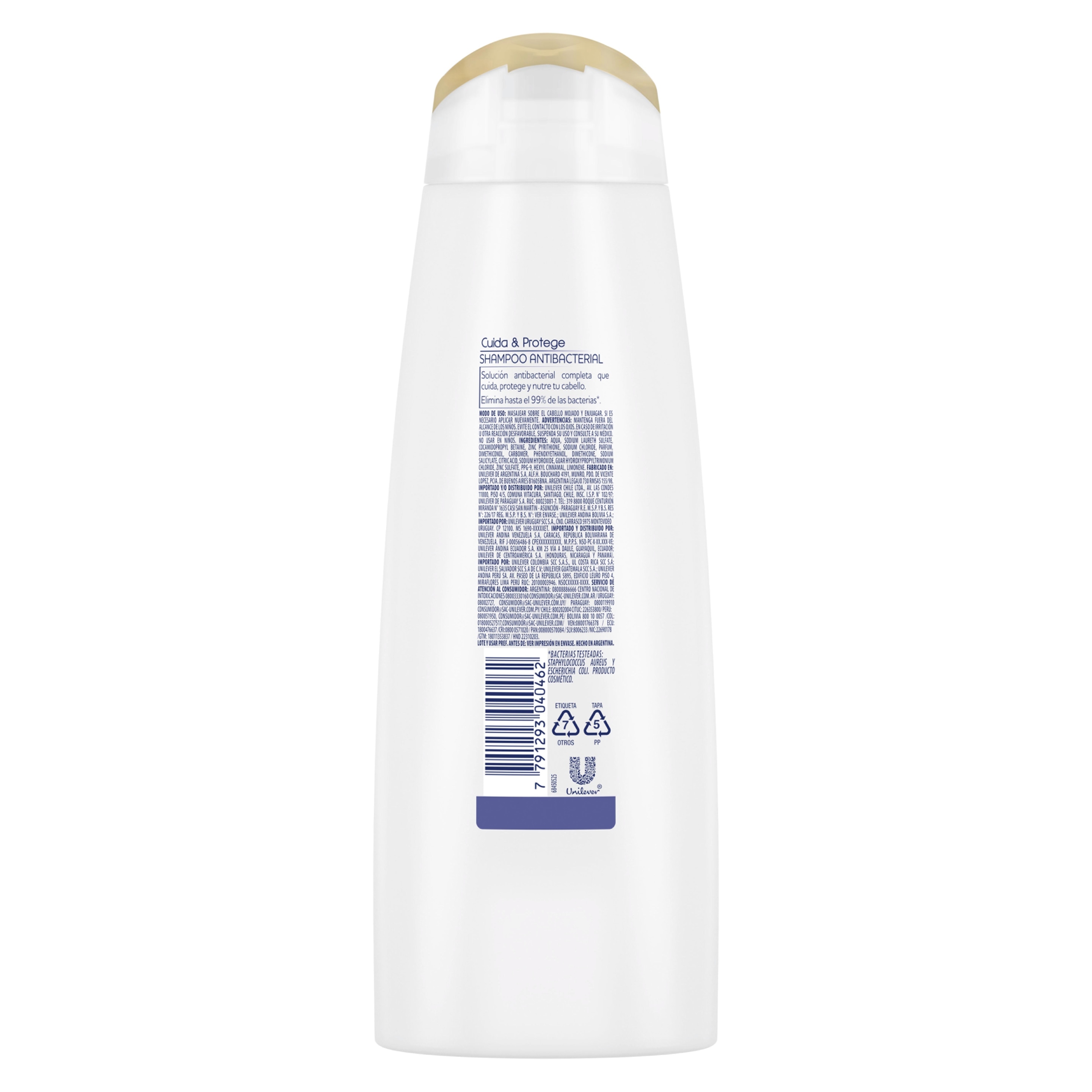 Shampoo Dove Cuida & Protege Antibacterial para una nutrición intensiva. Este shampoo Dove elimina el 99% de bacterias. Remueve las impurezas y bacterias mientras que da nutricion para el pelo. Los productos para el cabello Dove aportan un cuidado superior para tu pelo. Los shampoos Dove aportan toda la suavidad que tu pelo necesita. Un shampoo debería de hacer mucho más que solo limpiar. Por eso con Dove tu cabello recibe el cuidado progresivo que necesita.