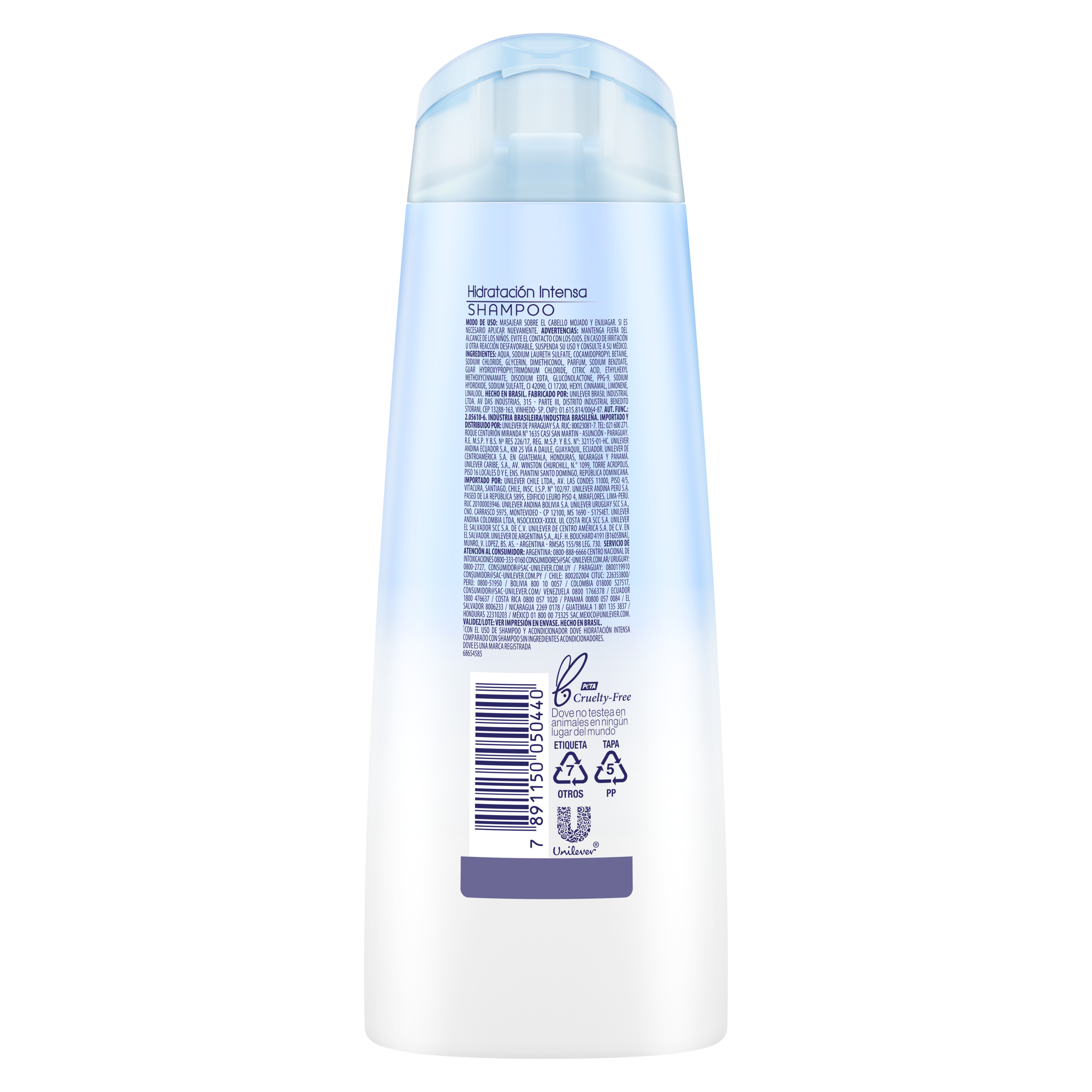 El shampoo dove ayuda a proteger el cabello del desgaste y de los daños diario. Shampoo que nutre para dejar el cabello sedoso y con 5 veces mayor suavidad. Los shampoos Dove tienen hidratación intensa te permitirá reparar el pelo y las puntas abiertas. La formulación del shampoo revitaliza profundamente el cabello dejándolo liviano y con brillo. Shampoo Dove te brindará una protección contra el quiebre, frizz y pelo seco. Utilizá el shampoo para conseguir una hidratación profunda en tu pelo.