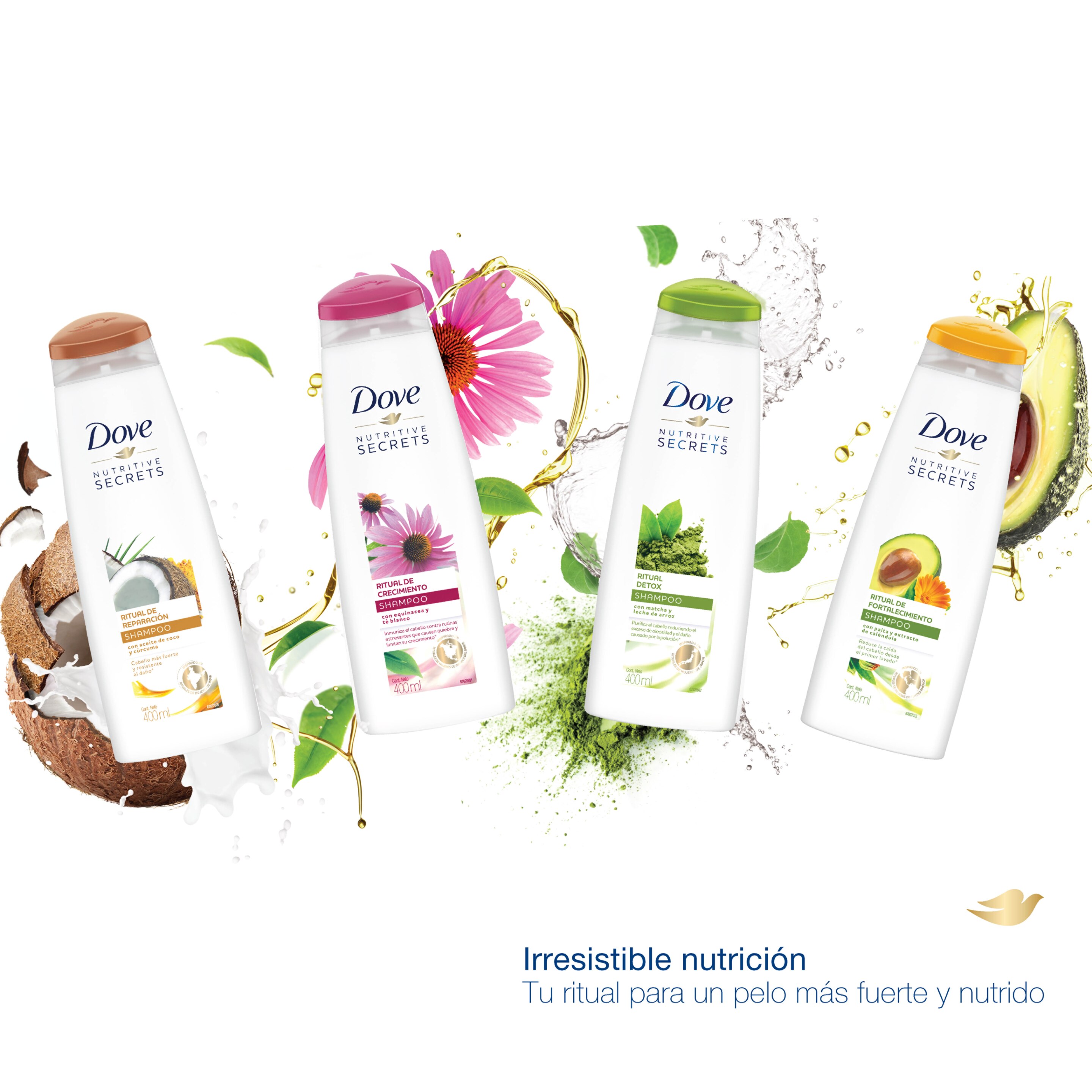 El Shampoo Dove Ritual de Reparación Coco y Cúrcuma ayuda a reparar los daños profundos desde el interior del pelo. Dove Ritual de Reparación es un shampoo nutritivo con aceite de coco y cúrcuma. Este shampoo ayuda a conseguir un cabello más fuerte y resistente al daño. Deja tu cabello nutrido y con suavidad. El tratamiento capilar que hidrata y fortalece desde la raíz hasta las puntas. El shampoo Dove le brinda a tu cabello un brillo superior y ayuda a reducir el frizz. Repara visiblemente los signos superficiales del desgaste, daños, puntas abiertas y pelo teñido. La nutrición capilar que necesitas.