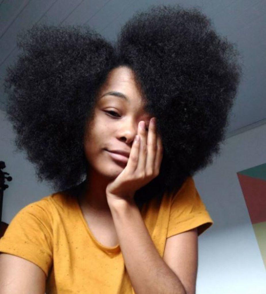“O terror da minha vida era ter que alisar o cabelo com ferro quente e ainda ficar com ele trançado pra o alisamento durar mais tempo. Toda semana era essa tortura. Agora me digam, qual o problema do volume?! As pessoas amam falar mal do volume do cabelo crespo e tentam abaixá-lo de todas as maneiras, sendo que é algo natural do nosso fio e ele fica muito mais bonito quando deixamos ele livre”.