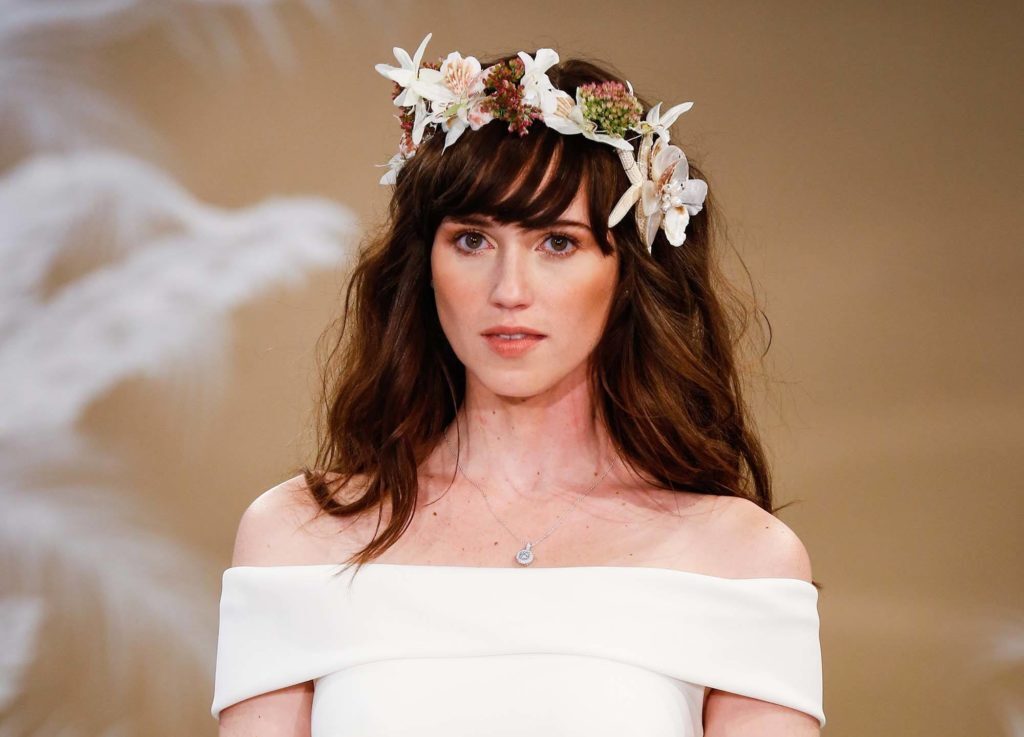 Aquele papo de que mulheres no casamento têm que usar os cabelos presos não está com nada. Os fios soltos também estão liberados. Com textura ou não, as noivas de franja podem até dar destaque a área com acessórios como coroas e tiaras.