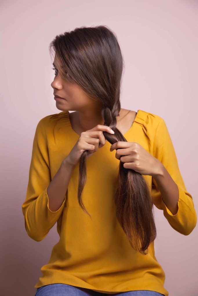 Último estágio (mas não menos importante!) da preparação: esteja com os cabelos limpos e secos. Embora trançar os fios para esconder a oleosidade do cabelo num bad hair day seja um truque bem conhecido, a trança lateral fica melhor no cabelo lavado há pouco. Isso porque os fios ficam mais soltos e com aspecto natural. Também por isso, o penteado dispensa produtos de styling. Apenas lave o cabelo com shampoo e condicionador próprios para seu tipo de cabelo e finalize com um óleo, que além de de hidratar o cabelo, ajuda a controlar o frizz.